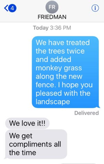 Dear Matthew: Our garden looks wonderful. It warms my soul. Thanks so much to you and your crew.